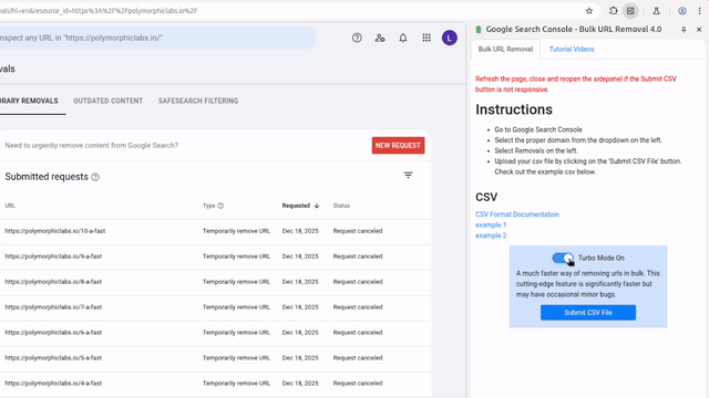 Fantastic Extension for Bulk URL Removal – Outstanding Support! I recently needed to remove over 700 URLs from Google using the Search Console, and this Chrome extension was exactly what I needed!